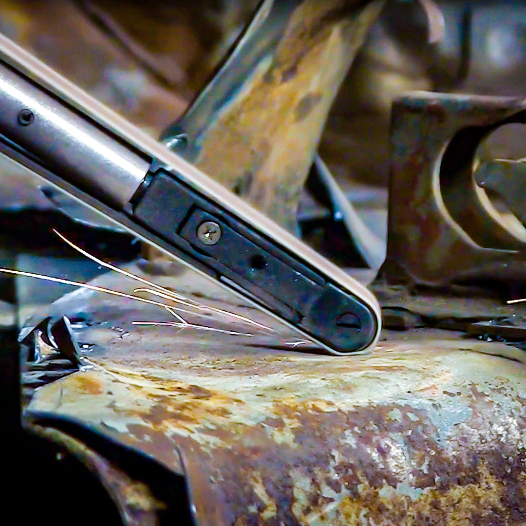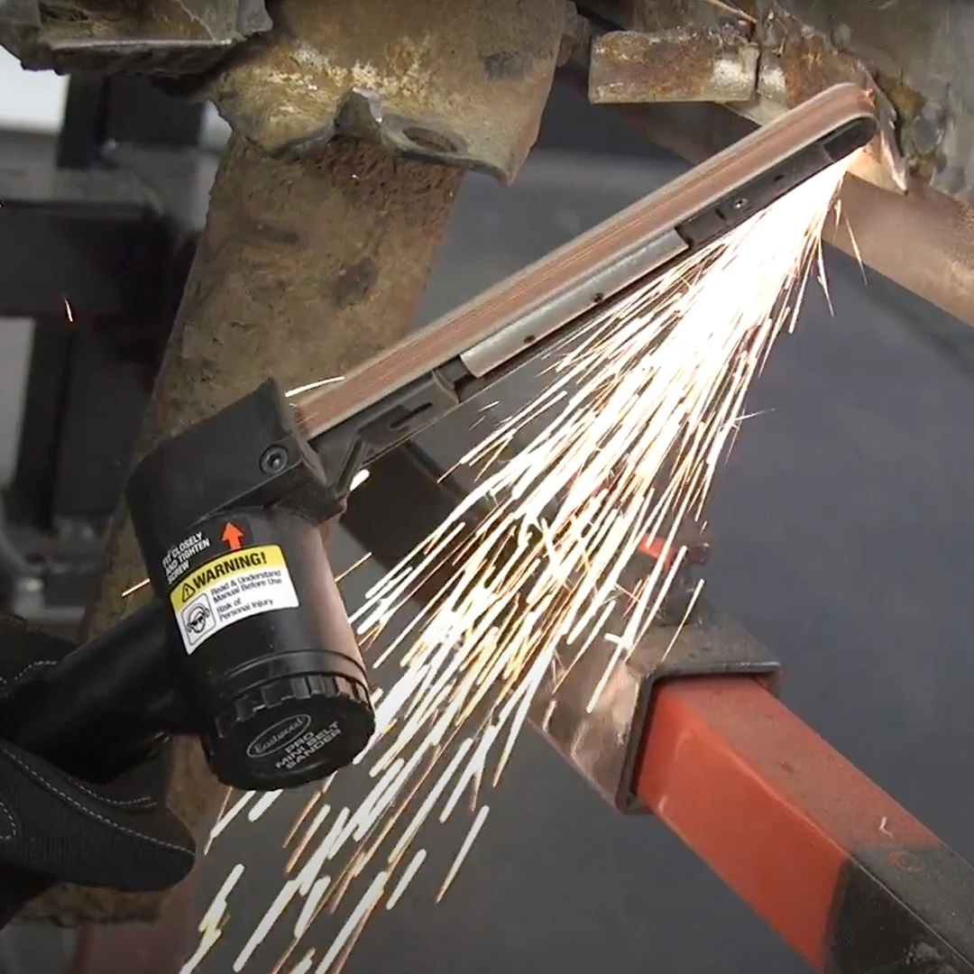 Grind In Those Tight Places! The Eastwood Pro Mini Belt Sander is perfect for those tough to reach areas, to grind out old welds, or flatten down new welds after you put a new panel in.