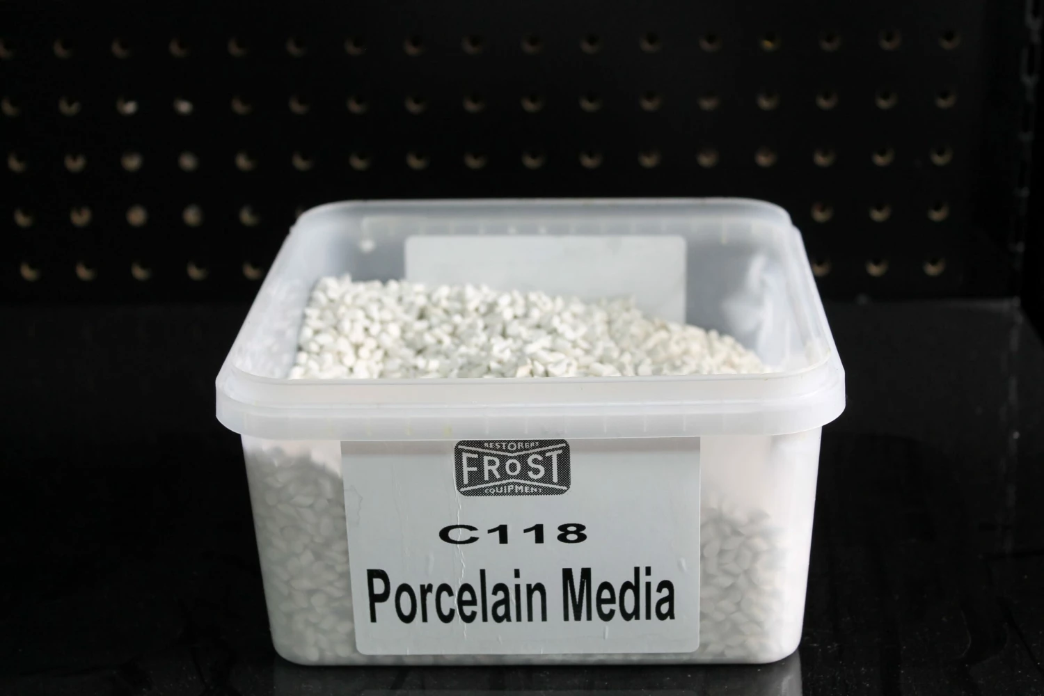 Porcelain media gives minimum abrasion and is used for the finishing process – USE WITH OR WITHOUT FROST VIBRO LIQUID.