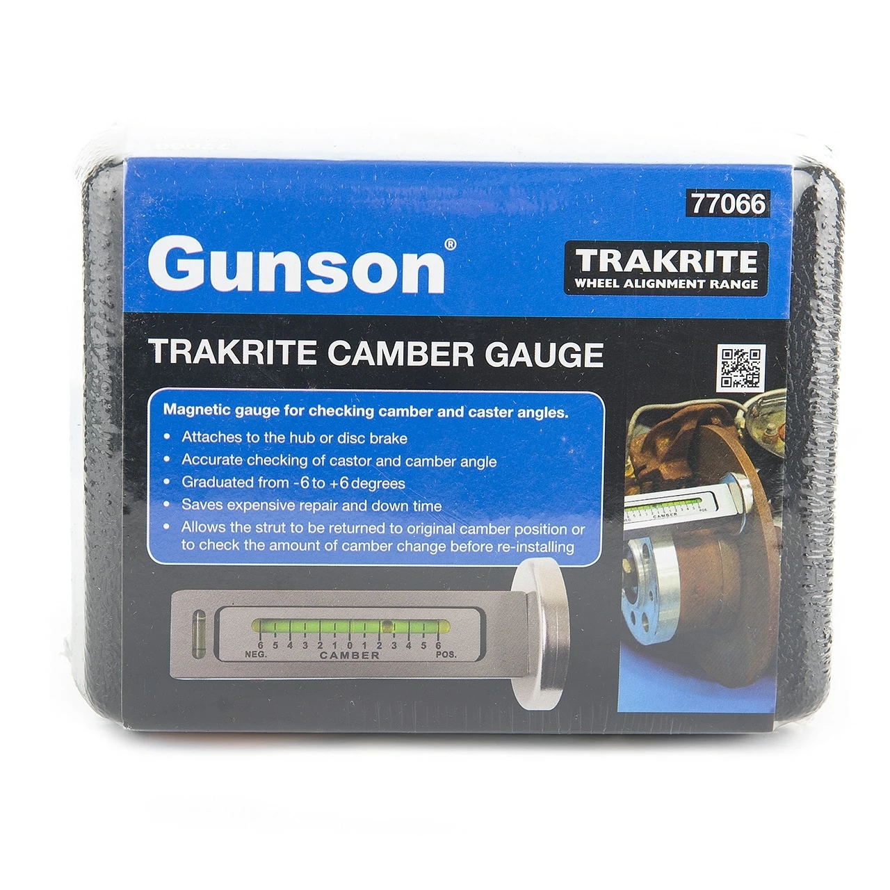 Measures the Camber and Caster angle on the wheel hub or brake disc and allows adjustment to maintain correct wheel alignment and even tyre wear. Graduates from -3 degrees to +3 degrees.