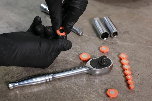 A set of 11 magnetic socket inserts, for converting standard metric sockets into magnetic sockets.