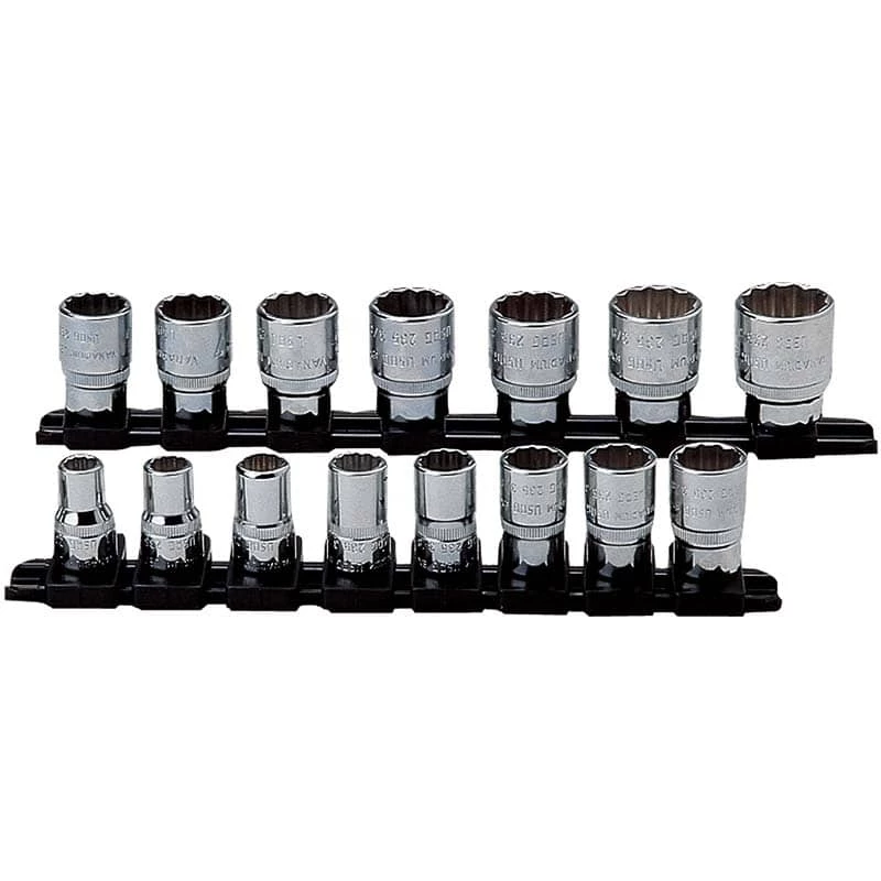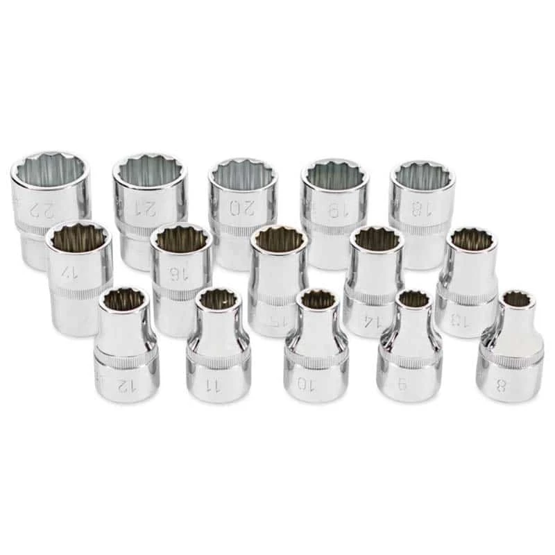 These 3/8″ drive sockets feature bi-hexagonal or 12-point gripping ridges to work with a wide variety of fasteners.