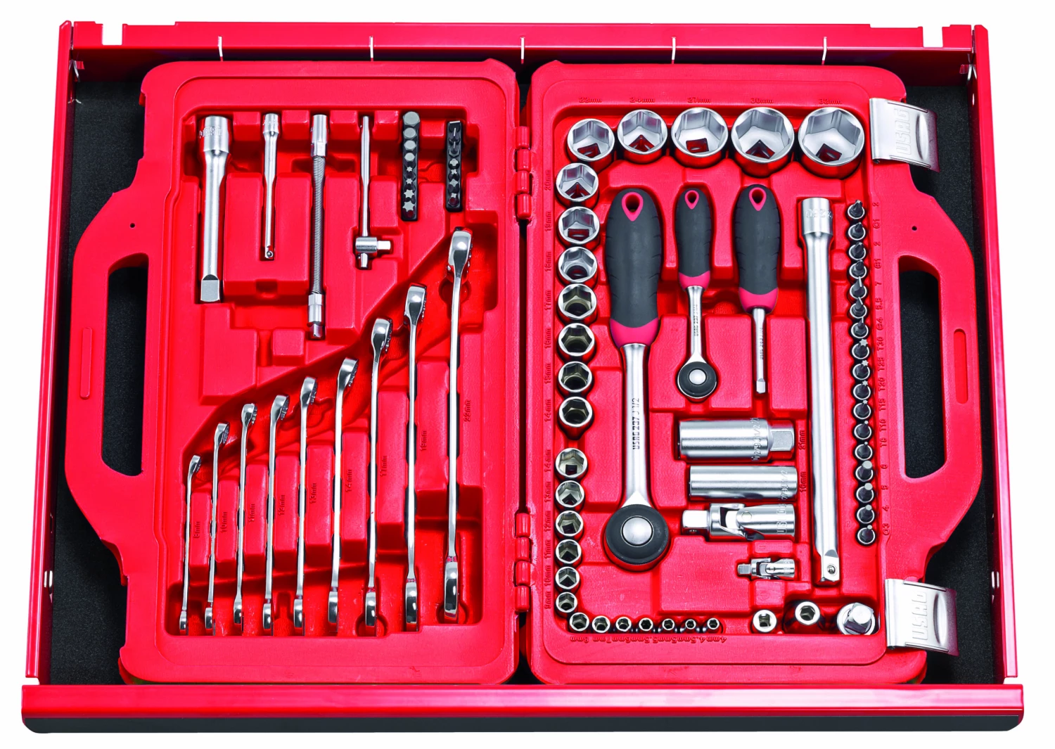 – 1/4″-1/2″ reversible ratchets with 72 teeth and socket releasing button